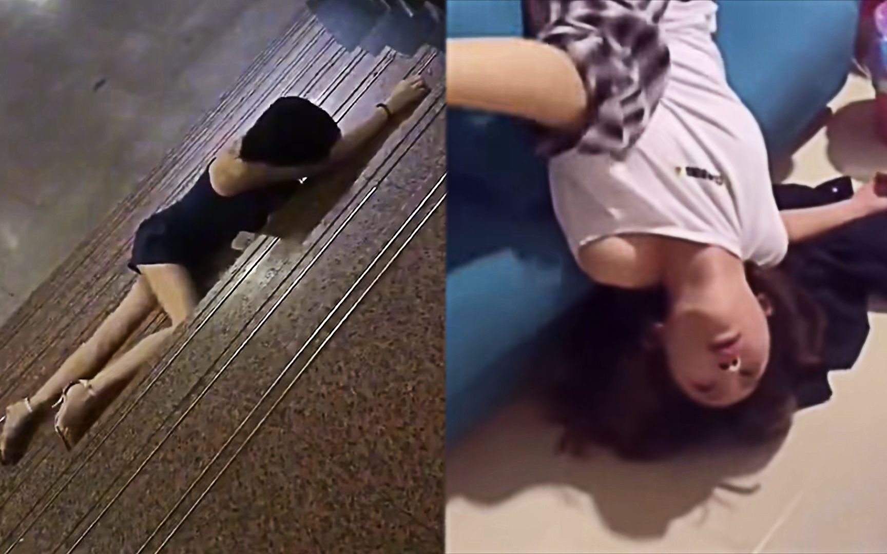 短裙女孩醉酒后躺在电梯里,抱走物业垃圾箱,还躺在绿化带上玩耍