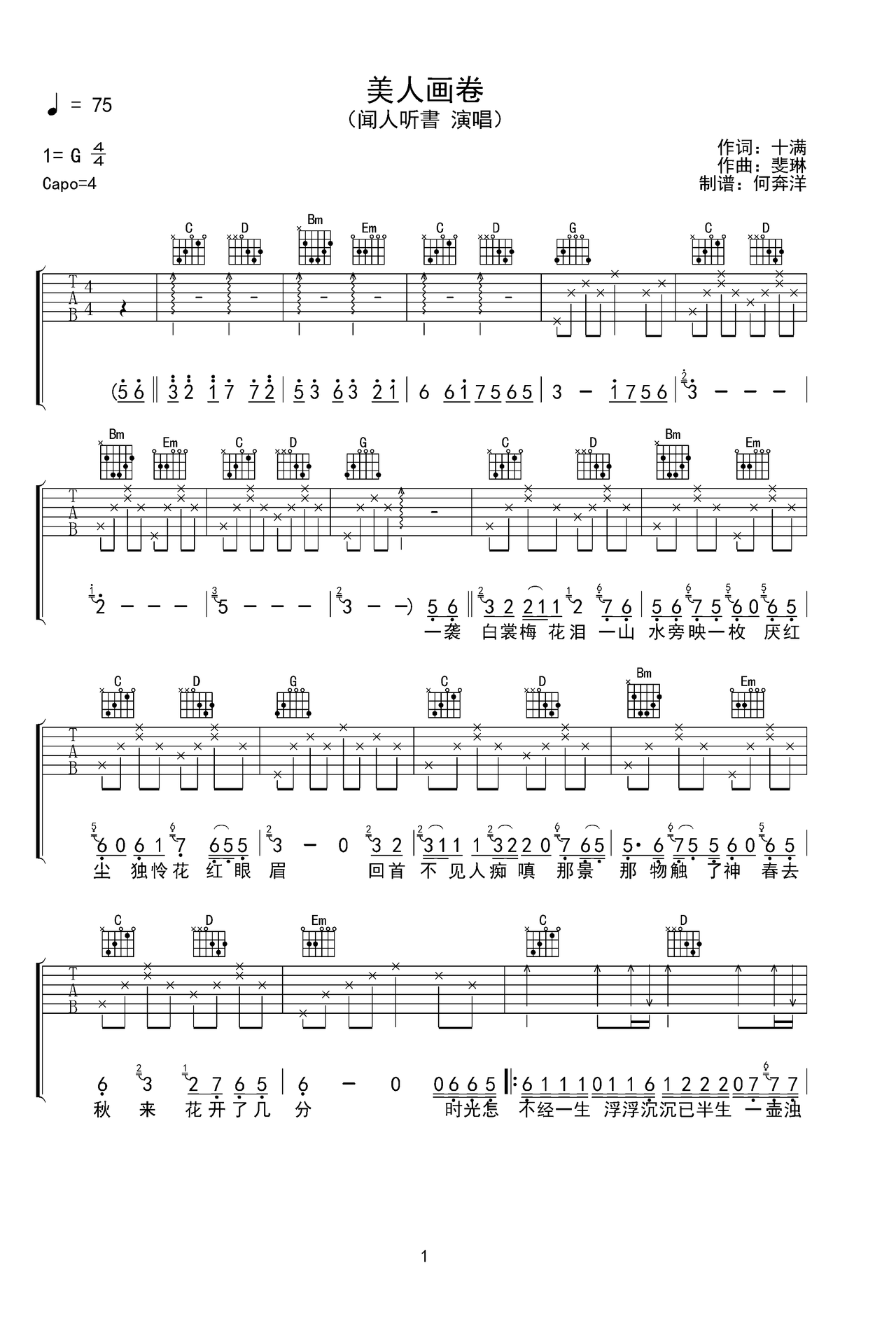 美人画卷简谱-闻人听书演唱-十满/斐琳词曲1