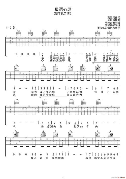 星语心愿(吉他六线谱,新手练习版)简谱_吉他简谱_zzmao简谱网