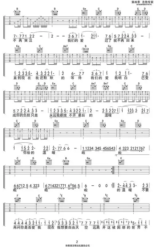 我们的爱吉他谱-吉他曲谱-爱曲谱网