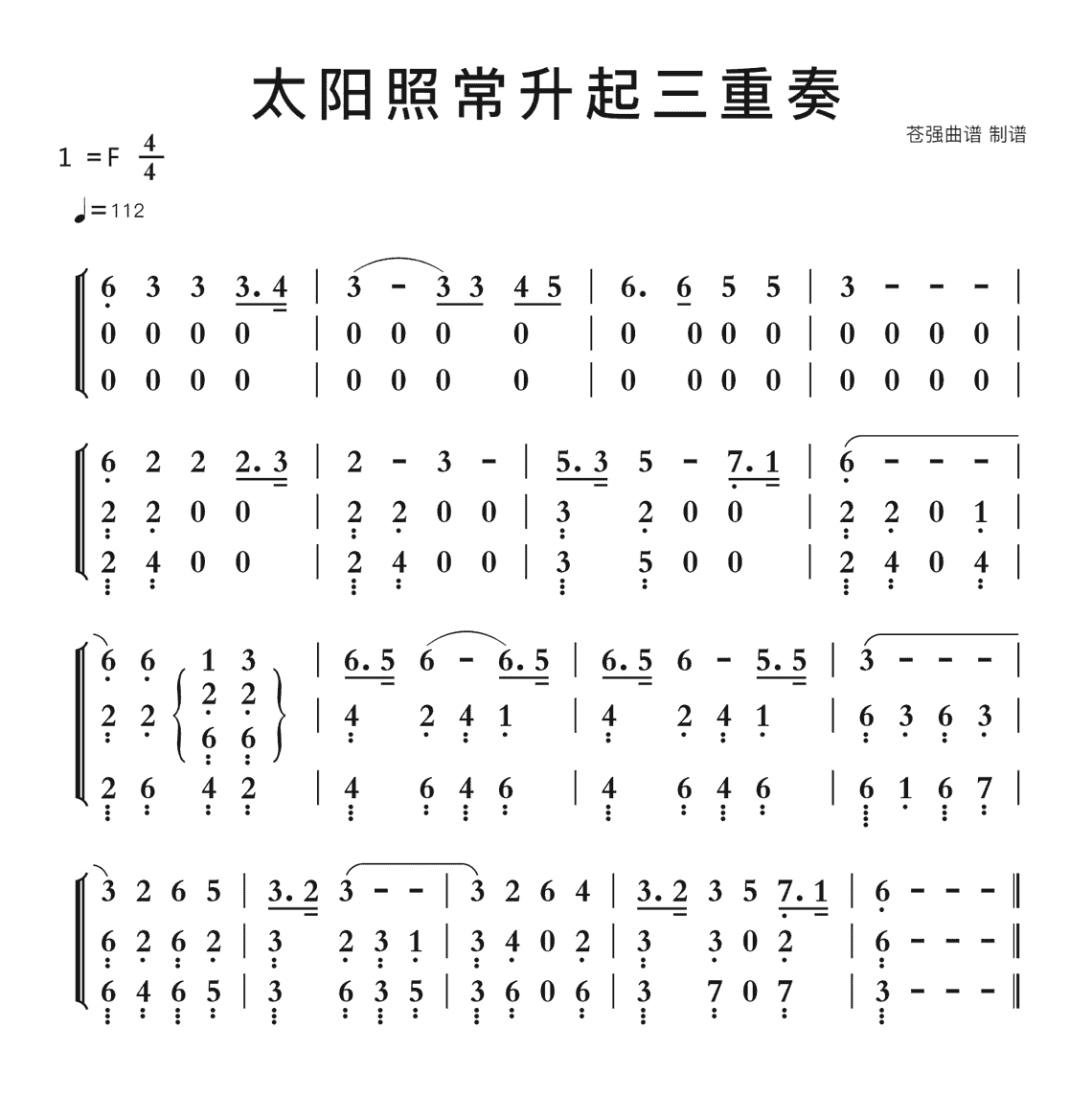 太阳照常升起三重奏简谱-苍强曲谱