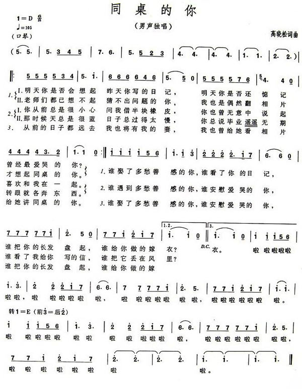 同桌的你乐谱海量同桌的你口琴简谱高清美图全方面多角度及时新鲜展现