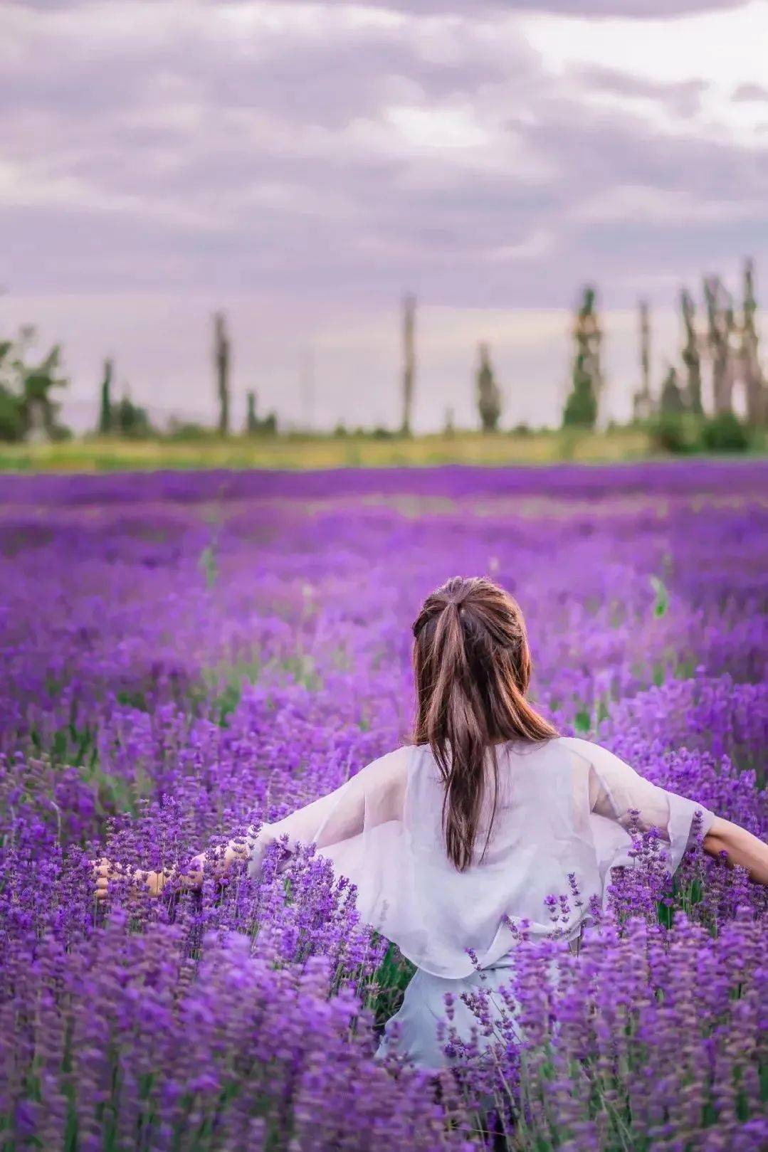 浪漫花草美女背影