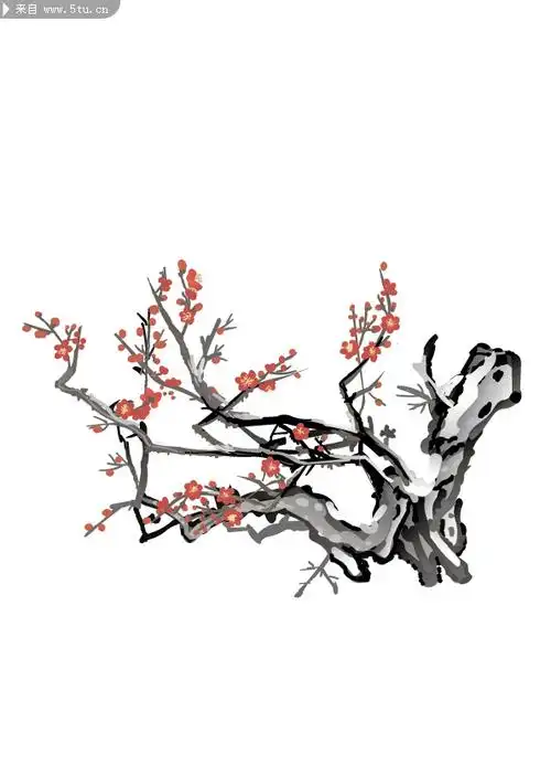 水墨画风格腊梅梅花枝上的红色梅花5965054免抠图片素材