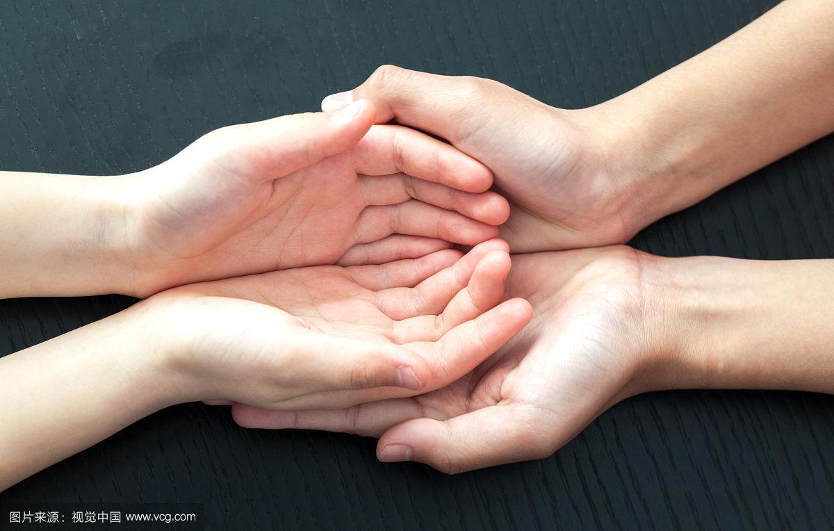两双紧紧握住的手放在黑色的背景上