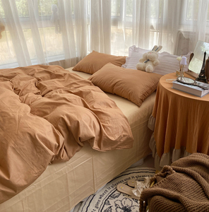 好看的咖啡色纯棉四件套 ins风撞色被套全棉床单纯色双拼床上用品