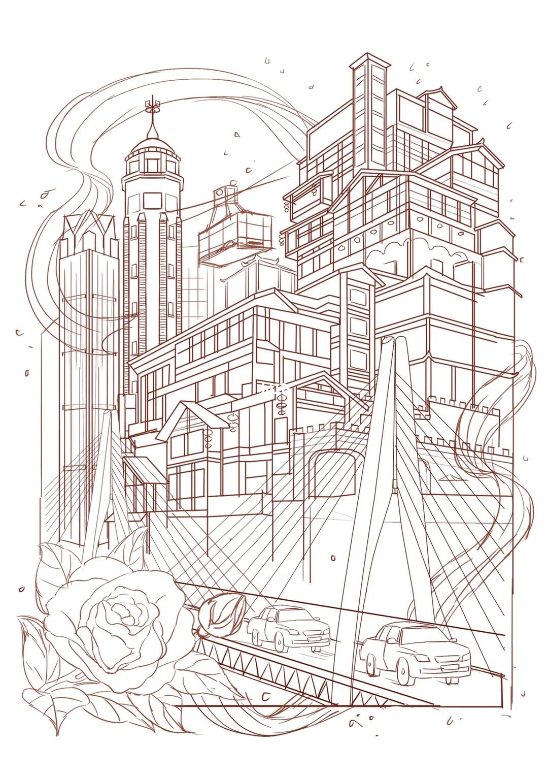 线描简笔画-城市