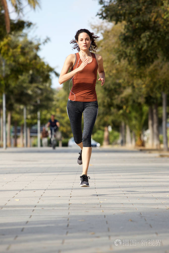 全身,正面,女人,穿,运动,衣服,跑,草地,微笑