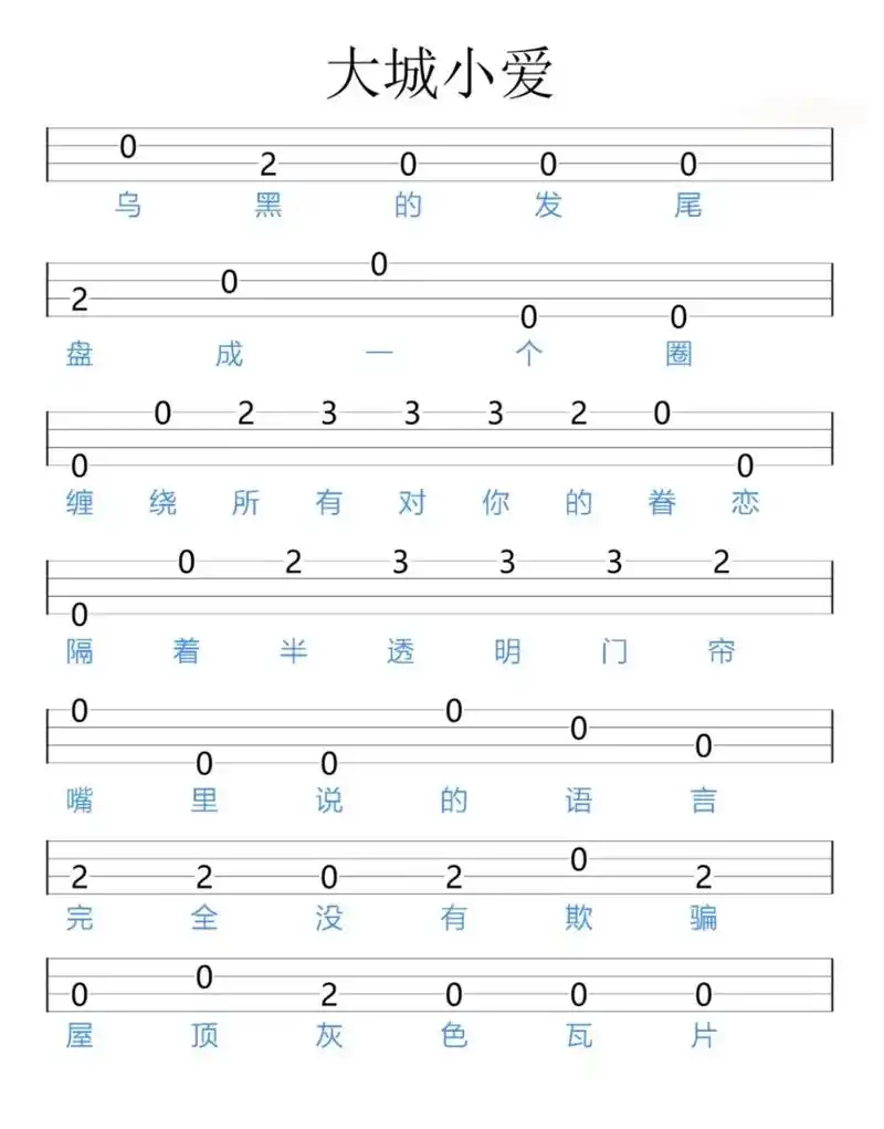 《大城小爱》_歌谱简谱_歌词简介_曲谱资料