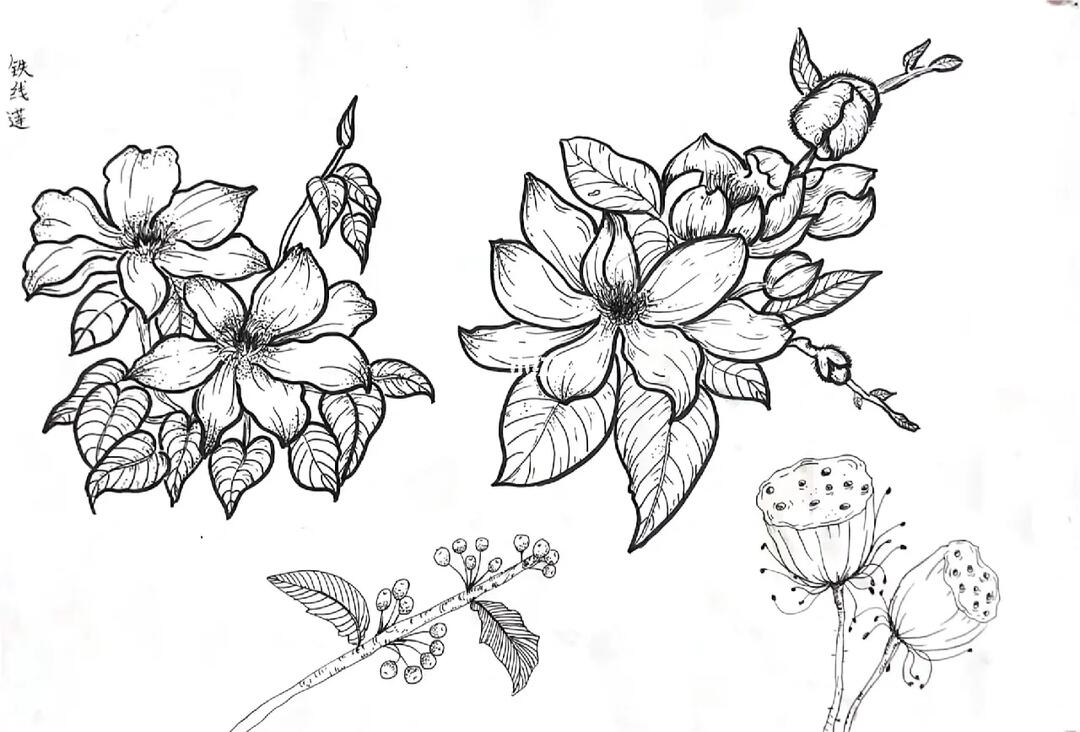 植物93花卉线稿素材|线描控笔临摹素材.#黑白线描画 #线描 - 抖音