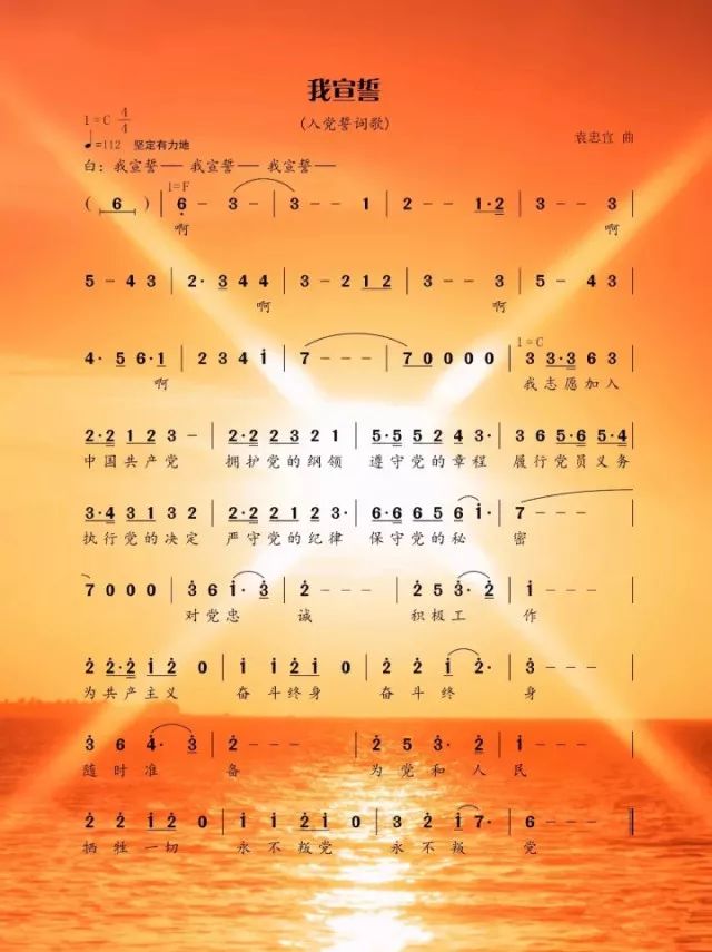 霍勇 总政歌舞团合唱队 - 我宣誓 钢琴四旋律伴奏 入党誓词歌合唱简谱