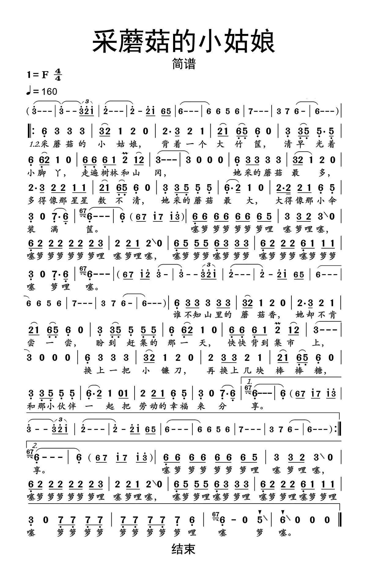儿歌采蘑菇的小姑娘简谱采蘑菇的小姑娘