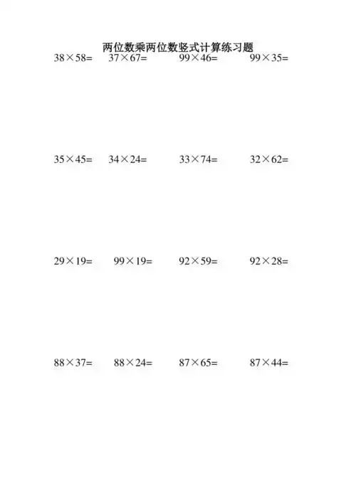 竖式乘法(2位数乘2位数) 竖式乘法,每页25题,共30页.