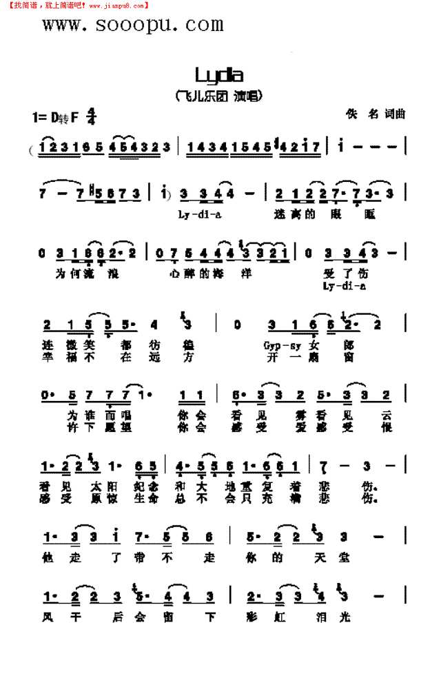 lydia简谱