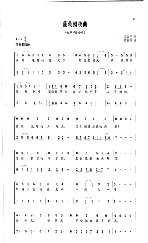 葡萄园夜曲(陆在易曲 吴国平词)简谱-合唱曲谱-爱曲谱网