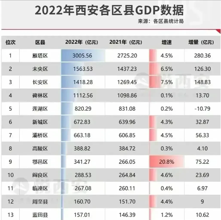 2022年西安各区县gdp:雁塔区突破3000亿元,新城区力压灞桥区|阎良区