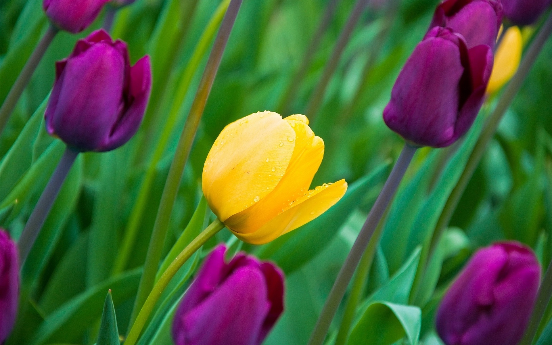 壁纸 紫色和黄色郁金香,许多花 1920x1200 hd 高清壁纸, 图片, 照片