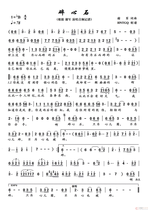 碎心石简谱-谢军演唱-瞧瞧制作曲谱1