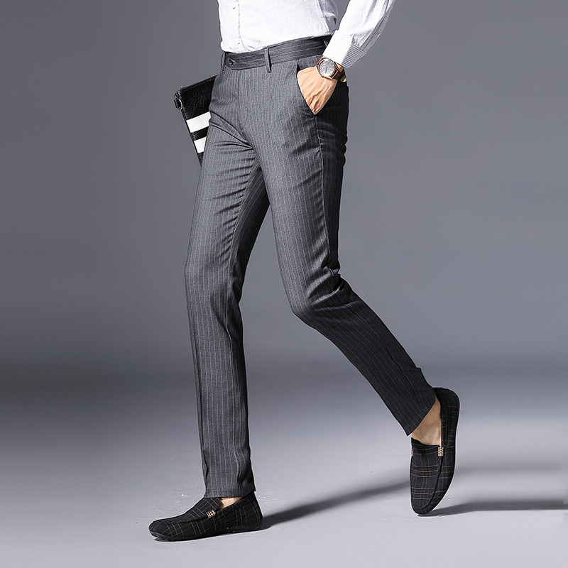 松紧商务条纹西装裤男修身韩版潮流休闲直筒西裤