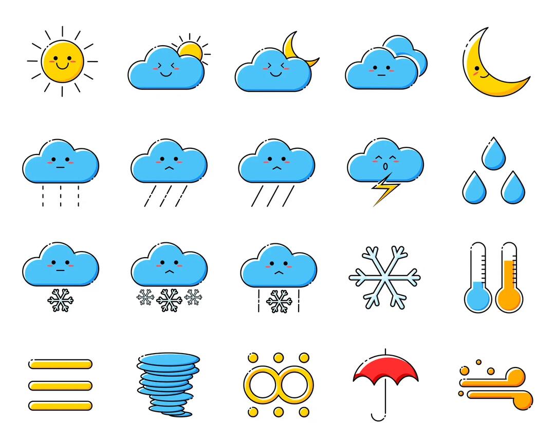 彩色卡通天气预报图标晴天雨雪多云雷电png免扣ai矢量图案素材