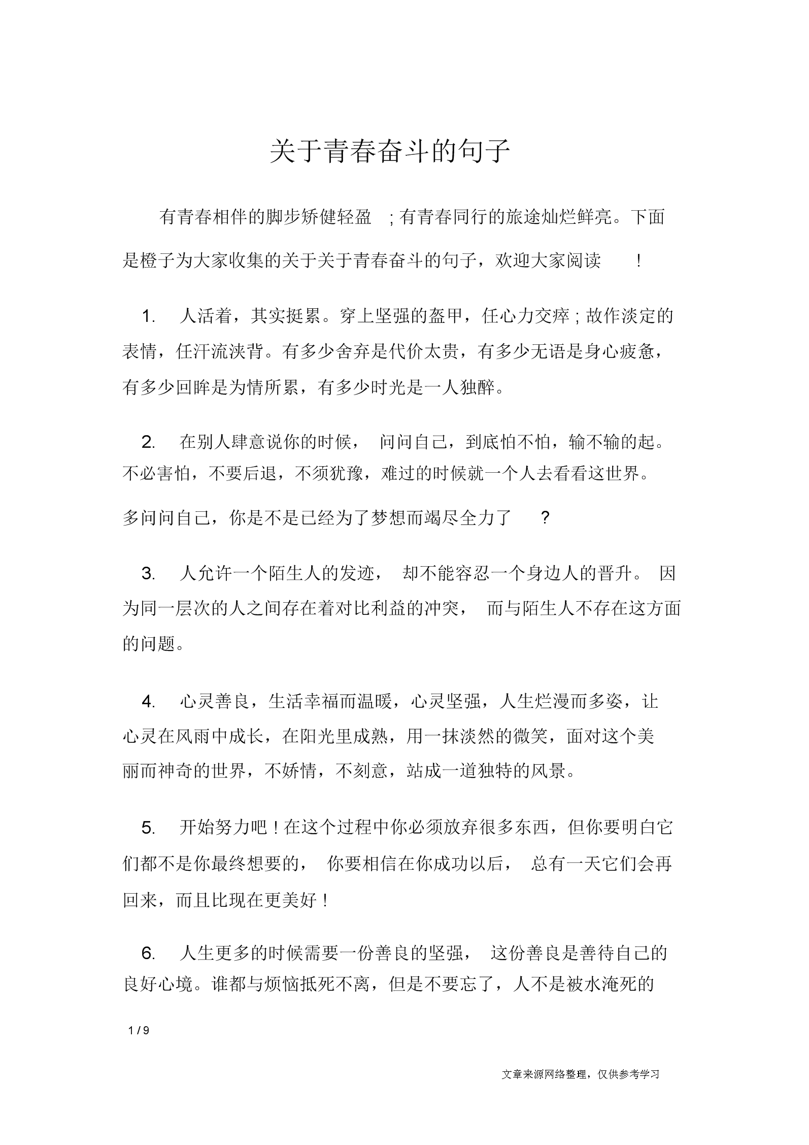 关于青春奋斗的句子经典语句docx9页