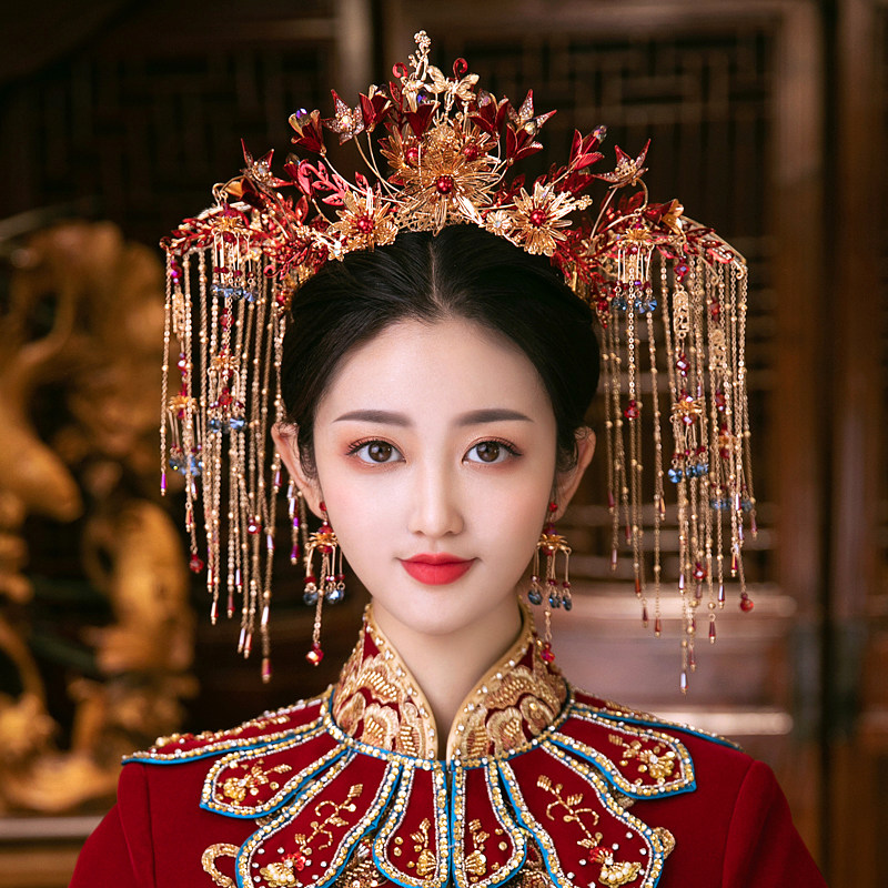 新娘古装中式凤冠头饰秀禾和服结婚新娘发饰秀流苏头饰套装