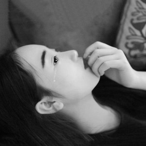 女生流泪伤感侧脸