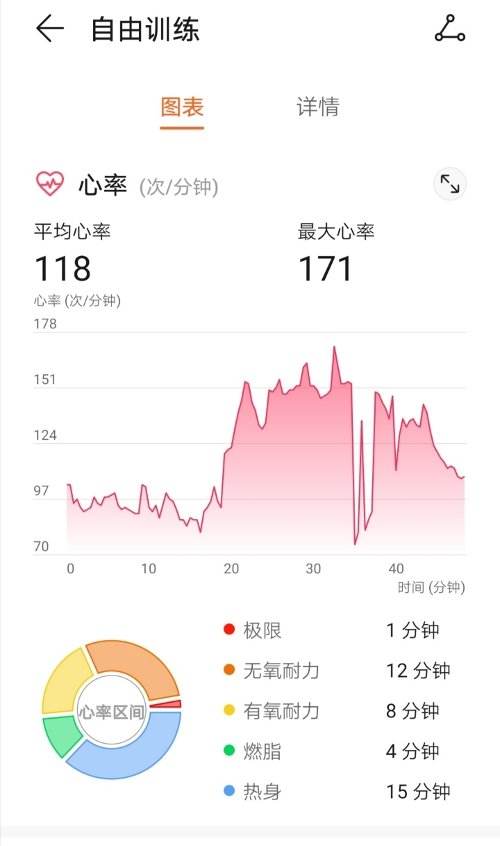 keep手环心率记录: 椭圆仪热身10分钟 45分钟单车 今日体重129.