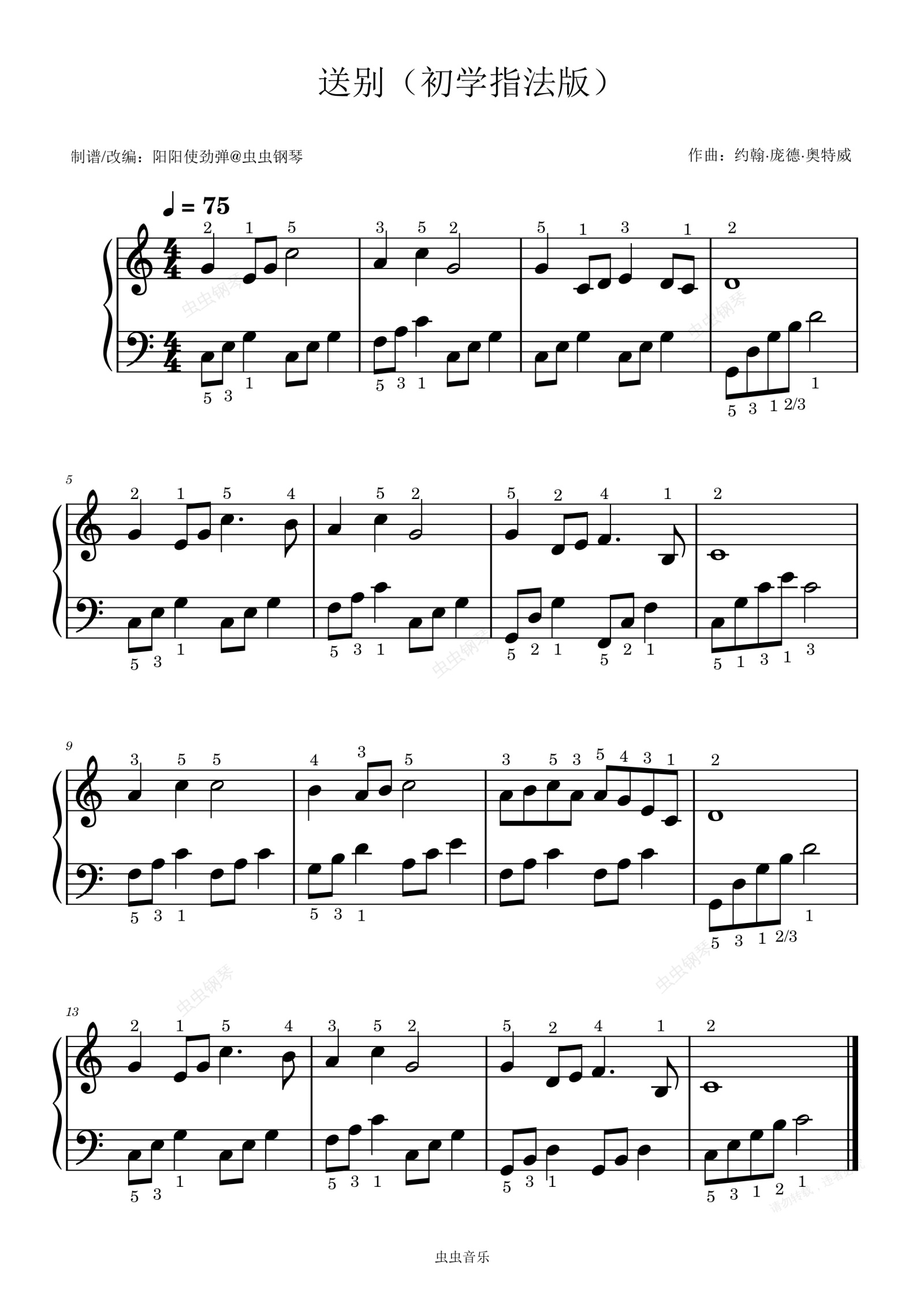 送别钢琴谱初学者无名