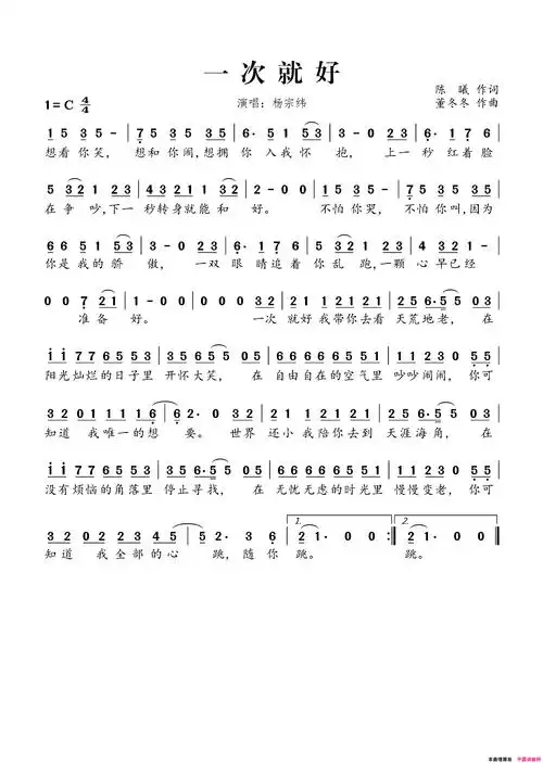 一次就好电影《夏洛特烦恼》暖水曲简谱1
