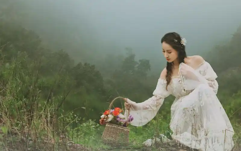 人物美女户外美女自然植物草花卉服装白色礼服womenwomenoutdoors