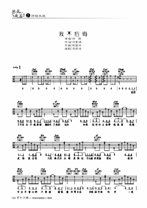 我不后悔 歌谱简谱网