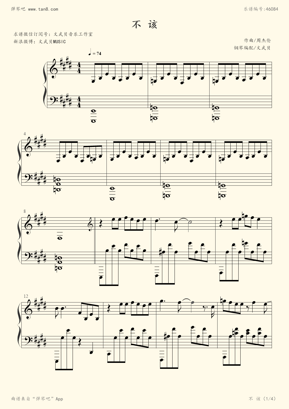 不该-周杰伦五线谱预览4-钢琴谱文件(五线谱,双手简谱,数字谱,midi