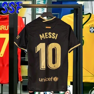 20-21赛季巴萨黑金球衣10号梅西球衣巴塞罗那客场黑色足球服男