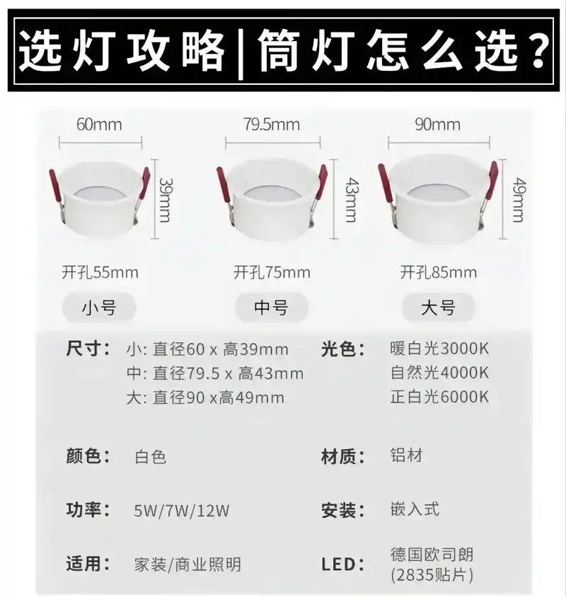 禾喵喵led筒灯客厅过道家用孔灯3w5w12w酒店工程嵌入式白光暖光天花灯