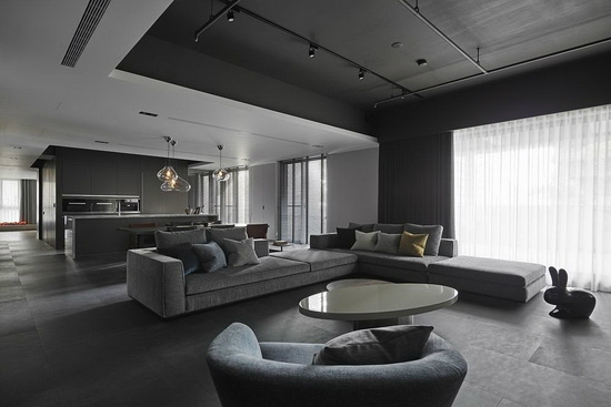 高级灰黑色天花板侘寂风极简小公寓