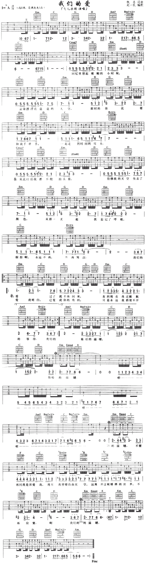 我们的爱(飞儿乐队演唱,赵一民编配版) 吉他谱