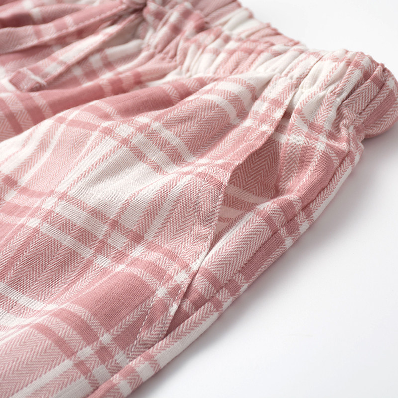 格子简约睡裤女士春秋夏季纯棉纱布双层薄款睡裤