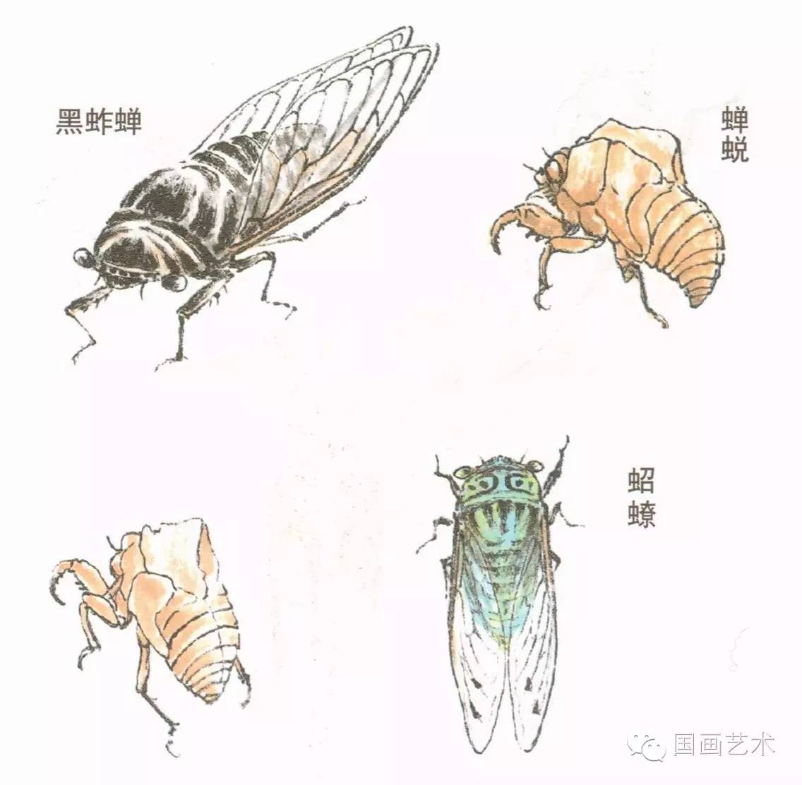 国画花鸟画之蝉的画法,以及各种形态的蝉的画法