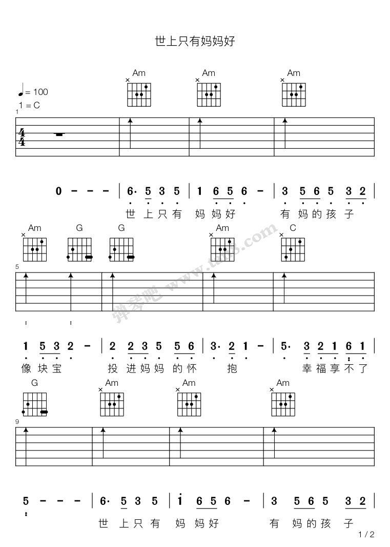 吉他谱 - 世上只有妈妈好