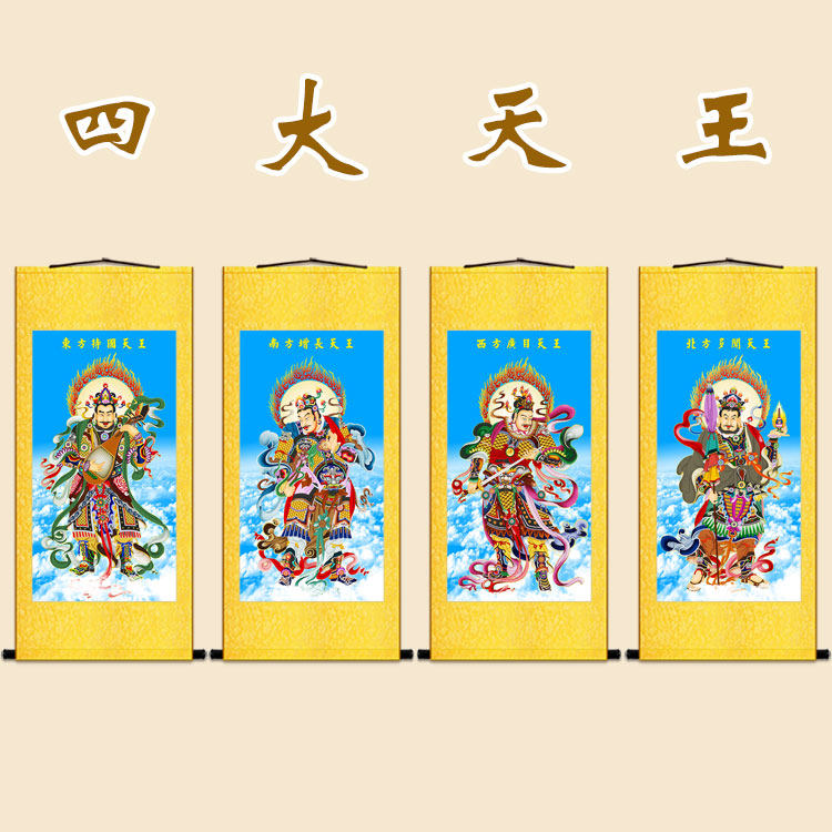 四大天王金刚护法画像佛教二十四诸天佛像卷轴画佛堂丝绸画定制