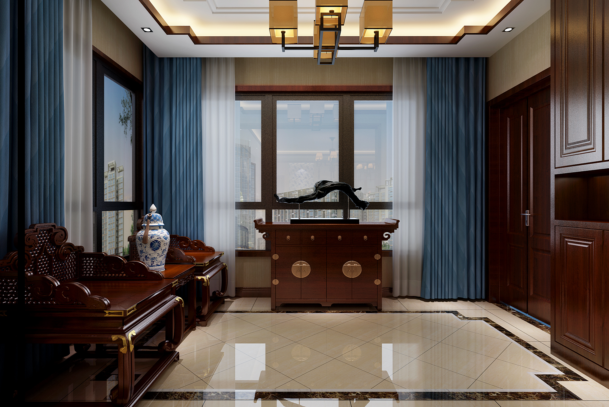 新中式风格别墅客厅装修效果图