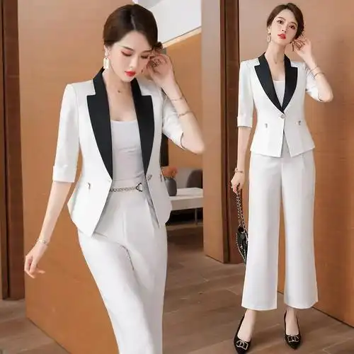 轻奢时尚职业装女式美容师西装套装女夏新款公美容师女装套装批发