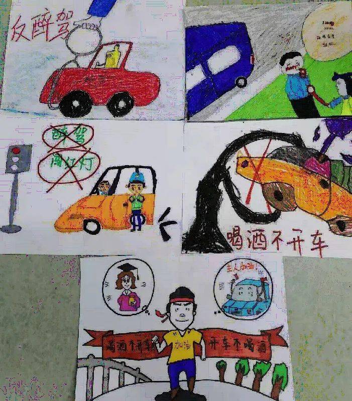 【主题画】|学生作品分享 交通安全,酒驾 交通文明 少儿美术 #交通