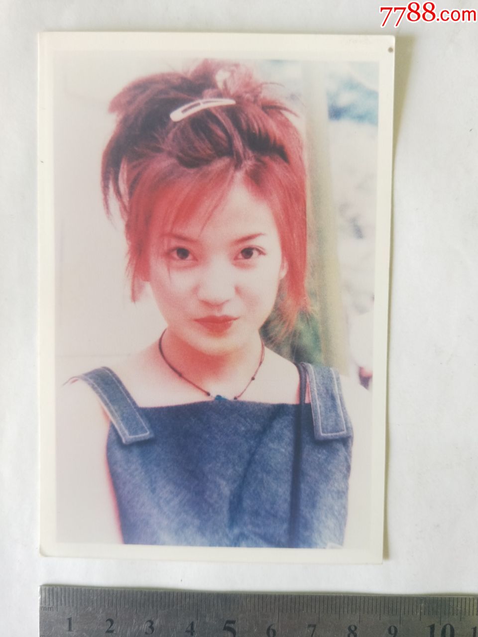 第三张:赵薇身穿蓝色上衣,留着一头学生短发,清纯动人.
