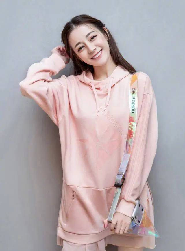 迪丽热巴粉色卫衣少女心炸裂,大口袋超亮眼,甜酷眼神四处在放电
