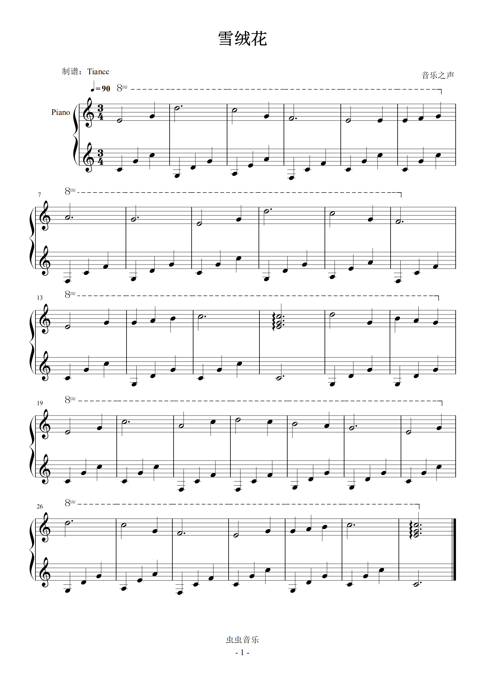 小汤3难度,轻柔好听,《雪绒花》小汤3难度,轻柔好听钢琴谱,《雪绒花》