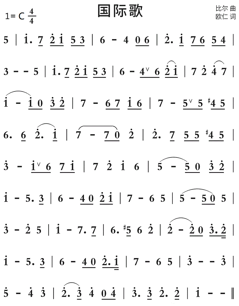 (法)鲍狄埃:国际歌简谱_(法)鲍狄埃:国际歌三字歌谱曲谱_三字歌谱_818