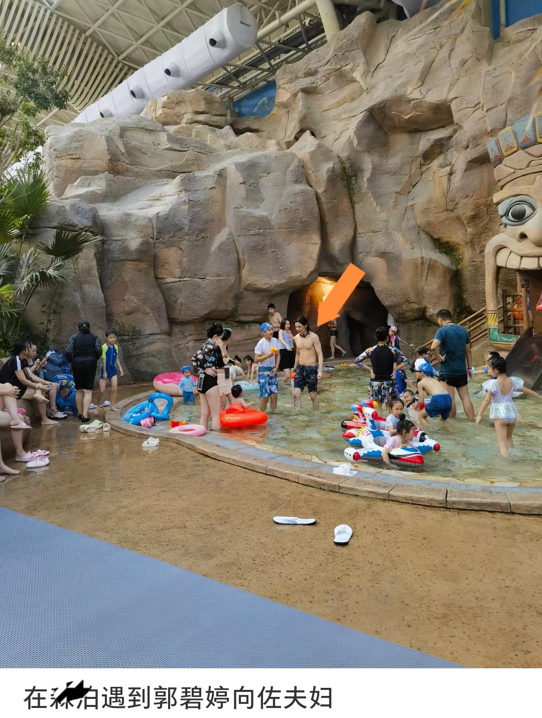 向佐一家亲子游,八块腹肌惹眼,郭碧婷泳池不摘口罩,有保镖保护
