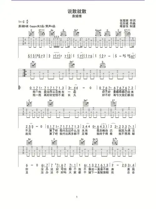 说散就散吉他谱